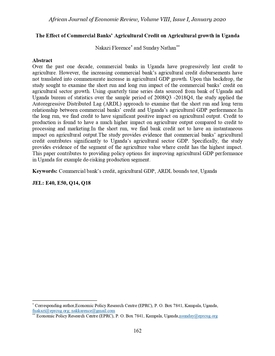 The Effect of Commercial Banks’ Agricultural Credit on Agricultural growth in Uganda
