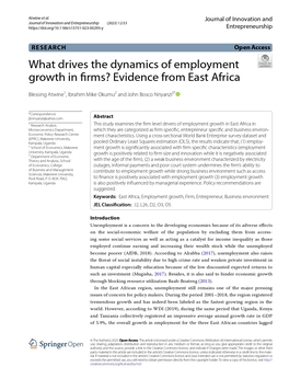 What drives the dynamics of employment growth in firms? Evidence from East Africa